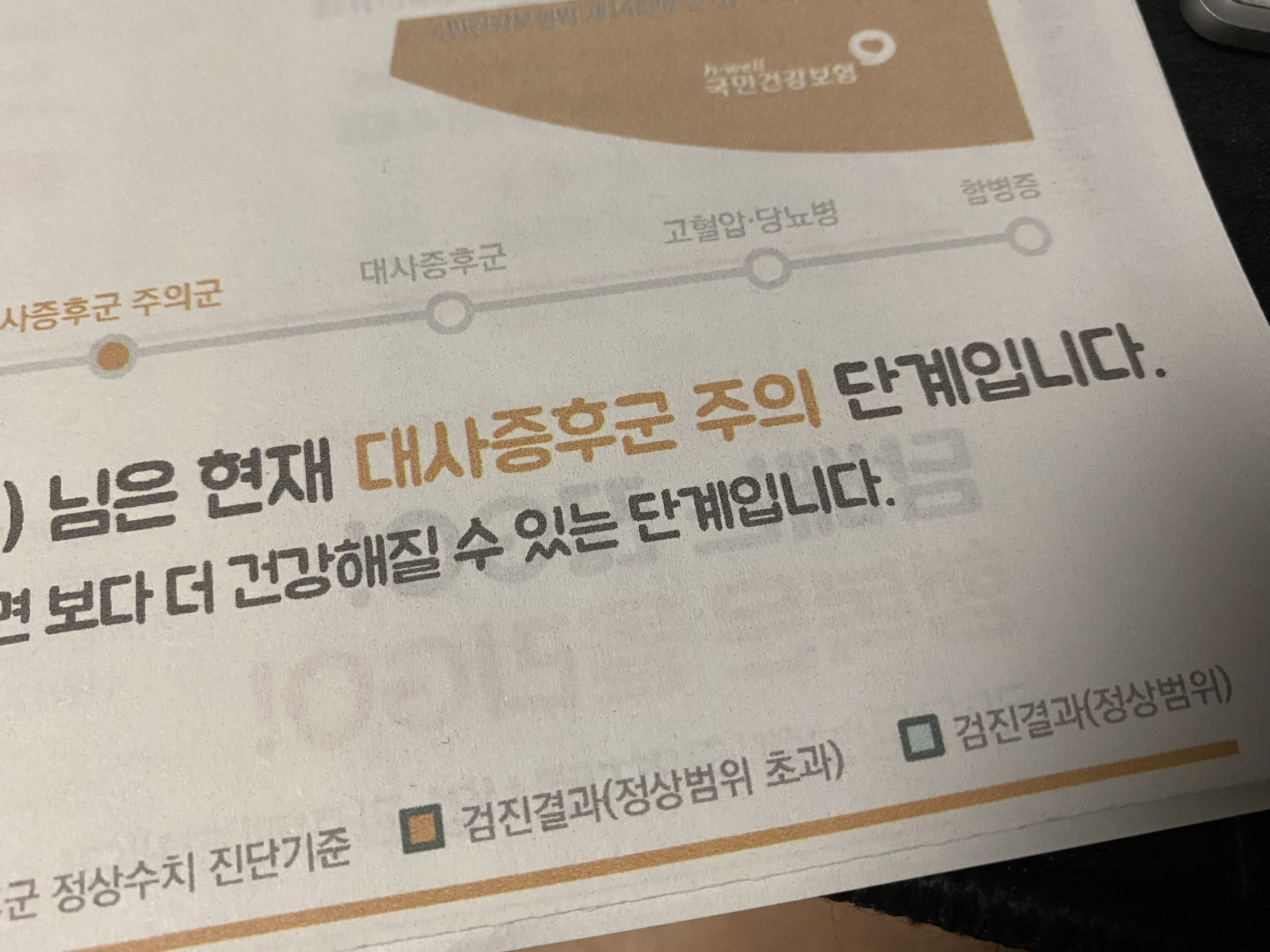 그 와중에 한통의 청구서가 날아왔다. 건강보험공단이었다. 별 달리 접점은 없는 곳인데, 뭘 또 내놓으라 하는가 싶어 표지를 보자마자 짜증이 조금 밀려왔다. 뜯자마자 반기는 것은 별 달리 없었지만, 내용은 이러했다. (ㅇㅇ님은 현재 대사증후군 주의 단계입니다.)